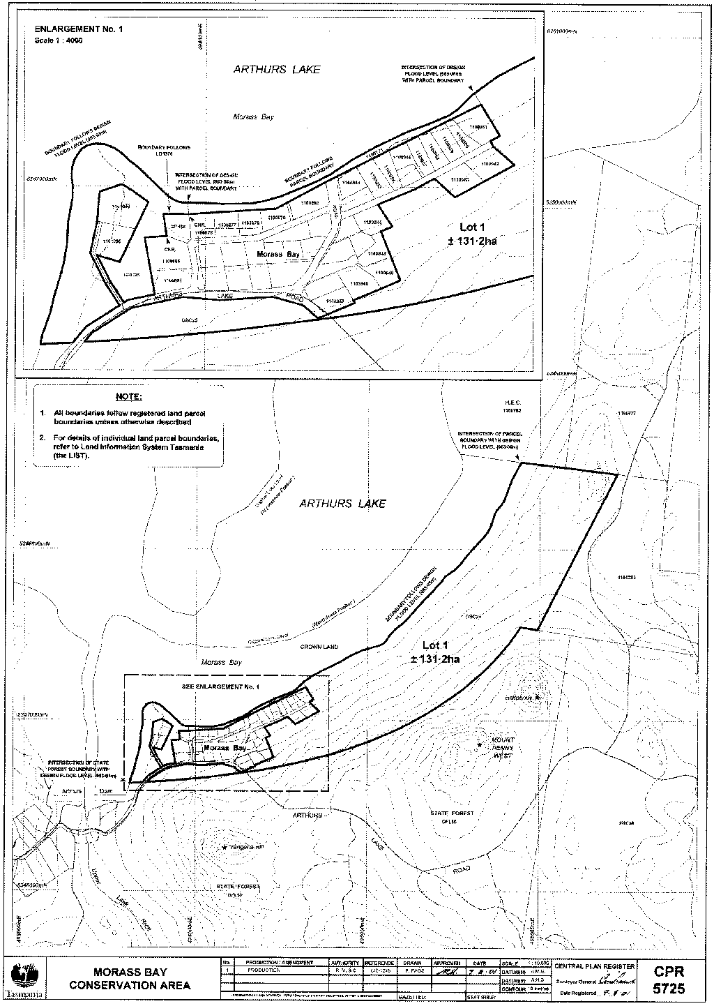 PART 6 - Morass Bay Conservation AreaAll that area of land comprising about 131.2 hectares shown bounded by a heavy black line on Plan Number 5725 in the Central Plan Register a reduced copy of which is set out, by way of illustration only, in Part 6 of Schedule 2 to this proclamation.