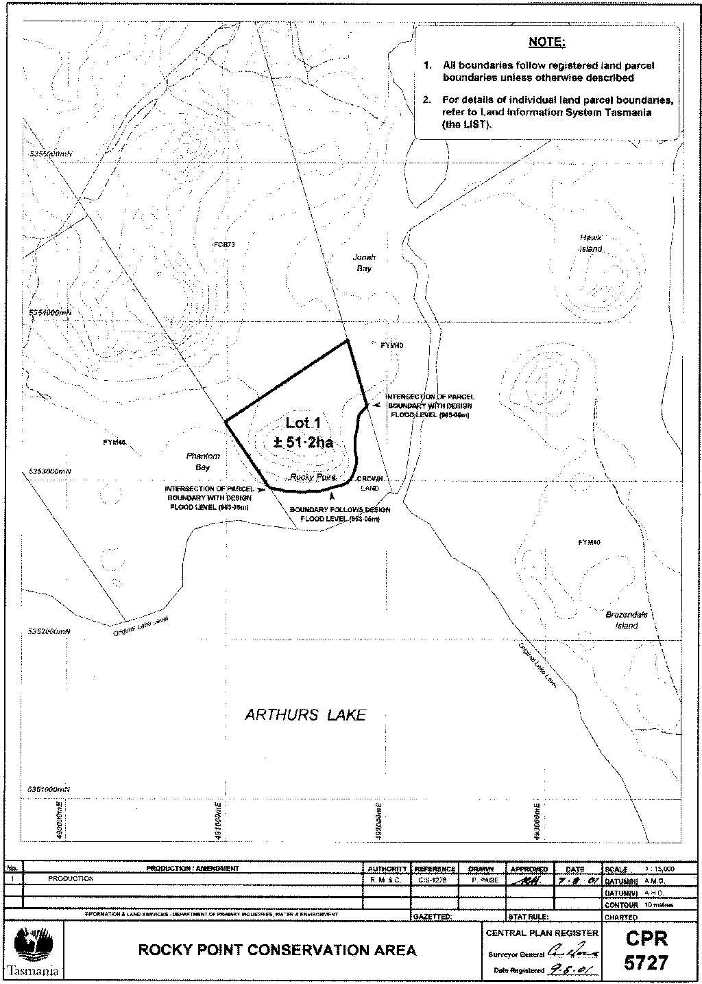 PART 8 - Rocky Point Conservation AreaAll that area of land comprising about 51.2 hectares shown bounded by a heavy black line on Plan Number 5727 in the Central Plan Register a reduced copy of which is set out, by way of illustration only, in Part 8 of Schedule 2 to this proclamation.