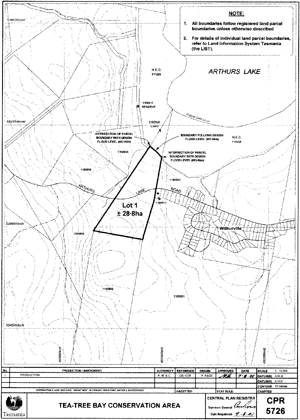 PART 9 - Tea-Tree Bay Conservation AreaAll that area of land comprising about 28.8 hectares shown bounded by a heavy black line on Plan Number 5726 in the Central Plan Register a reduced copy of which is set out, by way of illustration only, in Part 9 of Schedule 2 to this proclamation.