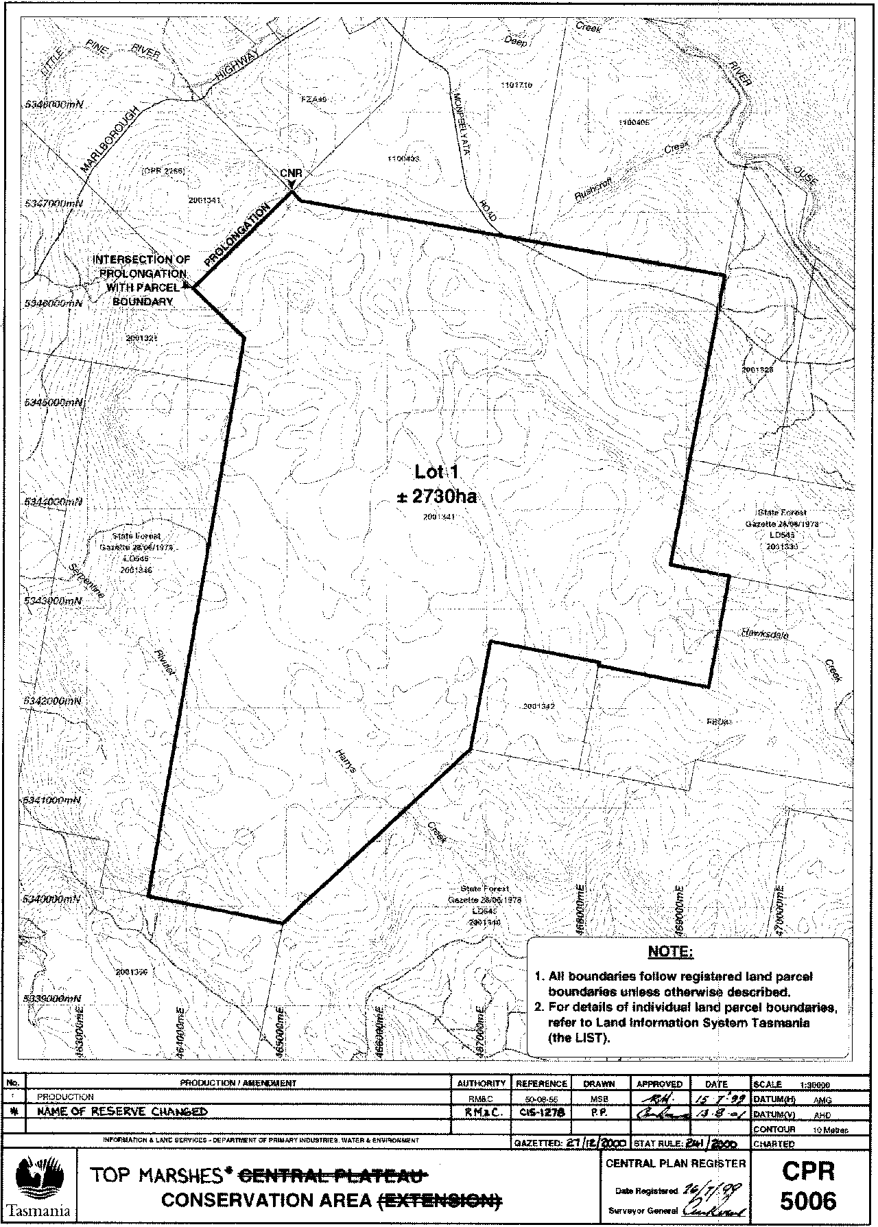 PART 10 - Top Marshes Conservation AreaAll that area of land comprising about 2 730 hectares shown bounded by a heavy black line on Plan Number 5006 in the Central Plan Register a reduced copy of which is set out, by way of illustration only, in Part 10 of Schedule 2 to this proclamation.