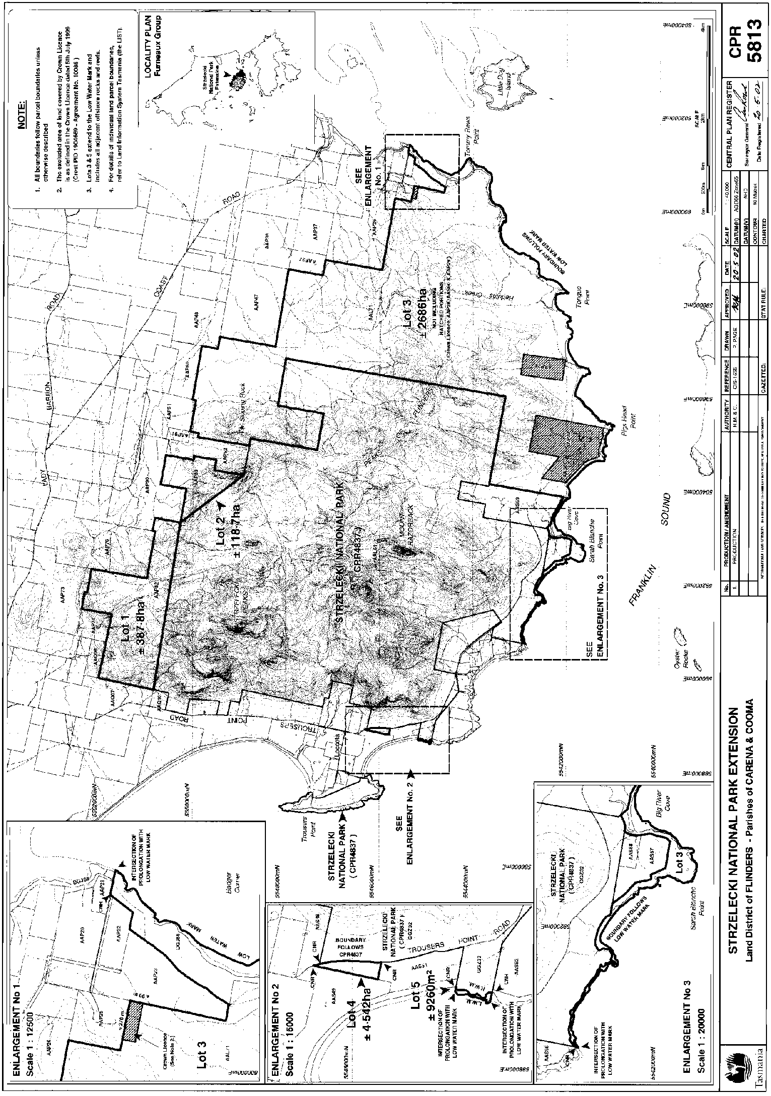 PART 2 - Strzelecki National ParkAll that area of land comprising about 3,198 hectares shown bounded by heavy black lines on Plan Number 5813 in the Central Plan Register, a reduced copy of which is set out, by way of illustration only, in Part 2 of Schedule 2 to this proclamation.