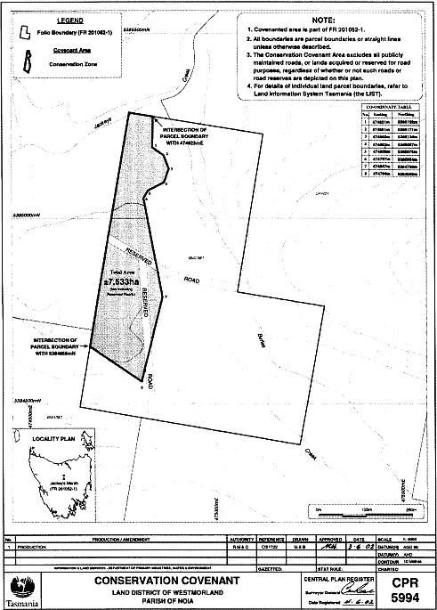 SCHEDULE 1 - Jackeys Creek Private Nature ReserveAll that area of land comprising about 7.533 hectares shown shaded and bounded by a heavy black line on Plan 5994 in the Central Plan Register, a reduced copy of which is set out, by way of illustration only, in Schedule 2 to this proclamation.