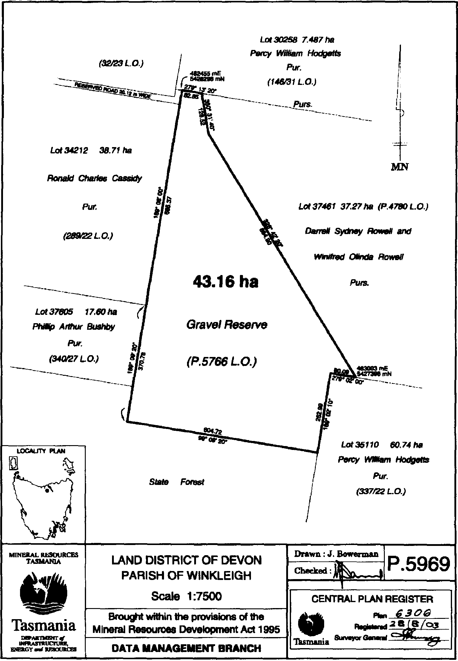 PART 1 - Plan 6306All that area of land comprising about 43.16 hectares bounded by a heavy black line on Plan 6306 in the Central Plan Register, a reduced copy of which is set out, by way of illustration only, in Part 1 of Schedule 2 to this order.