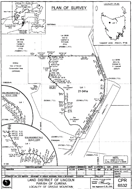 PART 1 - Partial revocation of Vale of Belvoir Conservation AreaAll that area of land comprising 21.04 hectares shown as Lot 1 and bounded by a heavy black line on Plan 6532 in the Central Plan Register, a reduced copy of which is set out, by way of illustration only, in Part 1 of Schedule 2 to this proclamation.