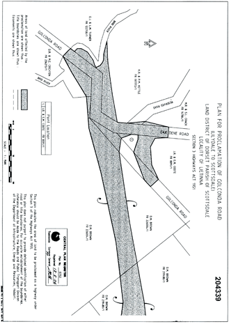 Name | Description | Length in kilometres | Golconda Road | From a point 150 metres west of its junction with Oak Dene Road in the locality of Lietinna to a point 950 metres east of its junction with Oak Dene Road, the boundaries of which are shown by heavy black lines on Plans 6752 and 6753 in the Central Plan Register, reduced copies of which are set out, by way of illustration only, in Parts 1 and 2 respectively of Schedule 2 to this proclamation. | 1.1 |