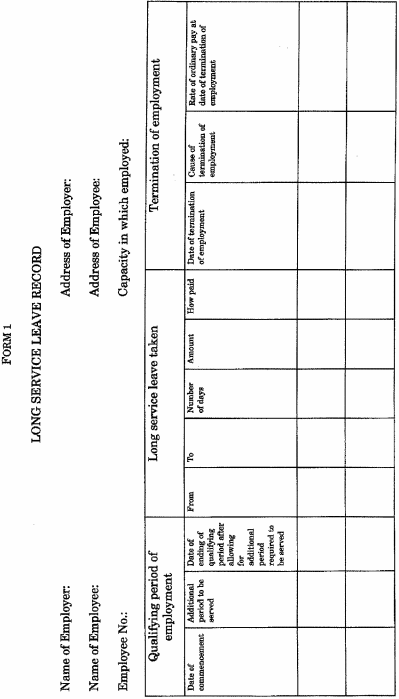 (1) For the purpose of section 18 of the Act, a long service leave record is to be (a) in writing; and(b) in accordance with Form 1 in Schedule 1 .(2) An employer (a) may cause the long service leave record to be incorporated with any other record relating to leave, time or wages; and(b) is to make an entry, or cause a relevant entry to be made, on the long service leave record as soon as practicable.(3) An employee, at any reasonable time, may inspect the record that relates to his or her entitlement to long service leave.