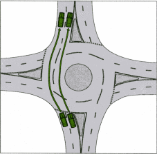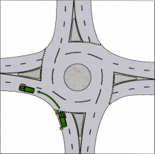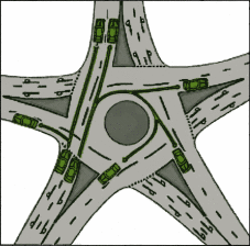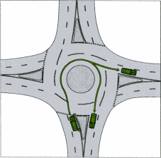 Driver's vehicle is defined in this dictionary and roundabout is defined in rule 109.