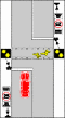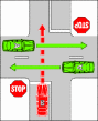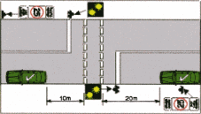 turn line means a road marking, at an intersection, consisting of a line (whether broken or continuous), that is designed to indicate how a turn is to be made at the intersection;twin red lights means a device showing, in a horizontal or diagonal arrangement, 2 illuminated red discs that flash alternately;twin yellow lights means a device showing, in a horizontal or diagonal arrangement, 2 illuminated yellow discs that flash alternately;two-way road means a road for use by vehicles travelling in opposite directions;