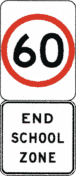 Although an area speed-limit sign on a road into a speed-limited area may indicate a speed-limit of 60 kilometres per hour, a particular length of road in the area may have a school zone sign indicating a 40 kilometres per hour speed-limit for that length of road.