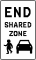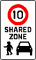 (1) The speed-limit applying to a driver for any length of road in a shared zone is the number of kilometres per hour indicated by the number on the shared zone sign on a road, or the road into the zone.Note A driver driving in a shared zone must give way to any pedestrian in the zone see rule 83.(2) A shared zone is Note Intersection is defined in the dictionary.(a) if there is a shared zone sign and an end shared zone sign on a road and there is no intersection on the length of road between the signs that length of road; or(b) if there is a shared zone sign on a road that ends in a dead end and there is no intersection on the length of road beginning at the sign and ending at the dead end that length of road; or(c) a network of roads in an area with (i) a shared zone sign on each road into the area, indicating the same number; and(ii) an end shared zone sign on each road out of the area; or(d) a road-related area that is between a shared zone sign that relates to the area and an end shared zone sign that relates to the area.(3) In subrule (2)(c)(i) and (ii),road does not include a road-related area.Note 1 Road-related area is defined in rule 13.