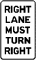 truck lane see rule 157;truck zone see rule 180;turning lane means a marked lane, or the part of a marked lane, for vehicles travelling in one direction to which (a) a left turn only sign, a left lane must turn left sign or left traffic lane arrows apply; or(b) a right turn only sign, a right lane must turn right sign or right traffic lane arrows apply; or(c) a U-turn permitted sign or U-turn traffic lane arrows apply;