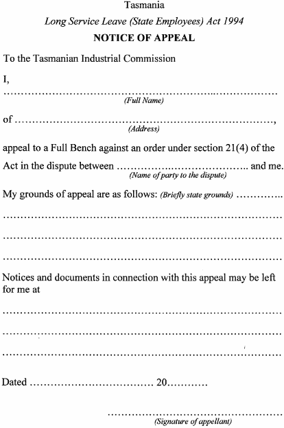 (1) An appeal under section 22 of the Act is to be instituted by a notice of appeal in accordance with Form 1 in Schedule 1 .(2) On the hearing of such an appeal, evidence and matters not raised before a Commissioner may only be admitted by leave of the Full Bench hearing the appeal.(3) A Full Bench may determine whether it is to hear both evidence and argument in respect of the appeal.(4) On the hearing of the appeal, a Full Bench (a) is to act according to equity, good conscience and the merits of the matter without regard to technicalities or legal forms; and(b) may direct itself by the best evidence it can obtain, whether that evidence is admissible in a court or not.(5) On the hearing of the appeal, a Full Bench is to consider any reason given by a Commissioner for any determination.(6) The provisions of sections 16 , 22 , 23 , 25 , 26 and 27 of the Commissions of Inquiry Act 1995 apply in an appeal before the Full Bench as if (a) a reference to the Commission in those provisions were a reference to the Full Bench; and(b) a reference to a Commissioner in those provisions were a reference to a member of the Full Bench.